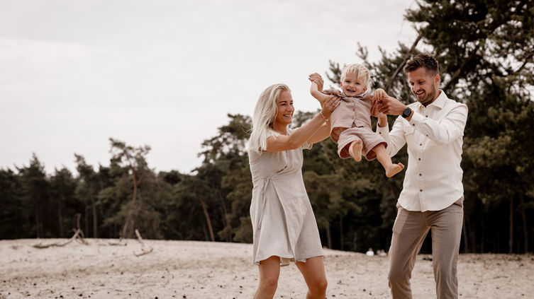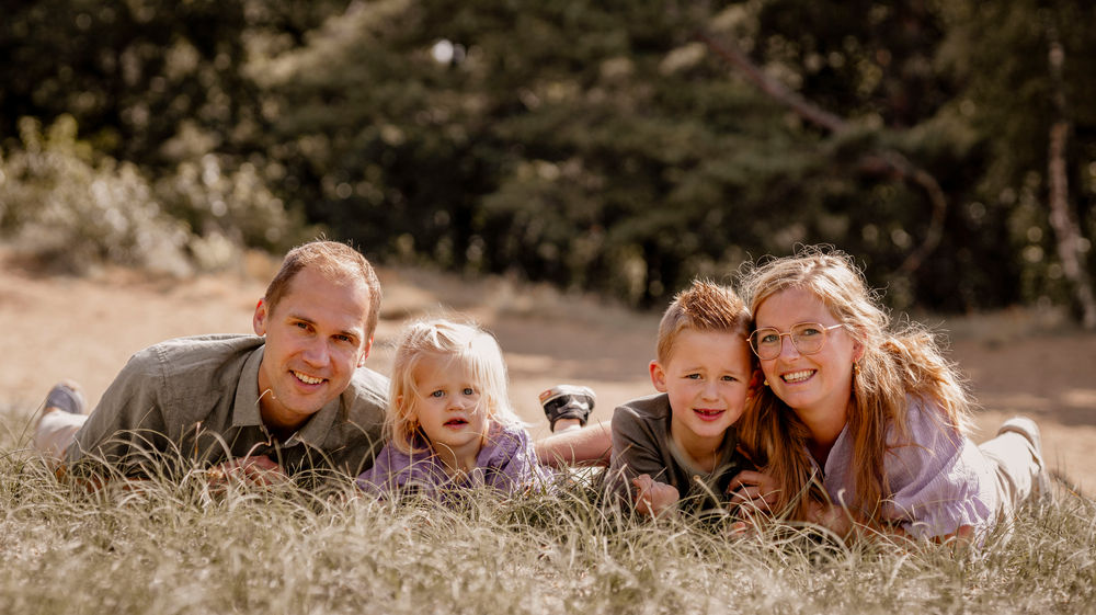 De shoot doen we buiten op een fotogenieke locatie. Denk aan het bos, op een zandvlakte, de heide, in het park, bij een plas, etc. Heb je zelf een leuk idee dan denk ik graag met je mee. Ik hou van sfeervolle, spontane foto's waarin iedereen tot zijn recht komt.
